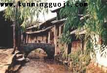 依山就水的麗江大研鎮(zhèn),既無高大圍城,也無軒敞大道,但它古樸如畫,處處透出自然和諧。鎮(zhèn)內(nèi)屋宇因地勢和流水錯落起伏,人們以木石與泥土構(gòu)筑起美觀適用的住宅,融入了漢、白、藏民居的傳統(tǒng),形成獨(dú)特風(fēng)格。當(dāng)?shù)爻R姷氖恰叭灰徽毡凇笔矫裾�,即主房、廂房與壁圍成的三合院。每房三間兩層,朝南的正房供長輩居住,東西廂房一般由下輩住用。房屋多在兩面山墻伸出的檐下,裝飾一塊魚形或葉狀木片,名曰“懸魚”,以祈“吉慶有余”。許多庭院門樓雕飾精巧,院內(nèi)以卵石、瓦片、花磚鋪地面,正面堂屋一般有六扇格子門窗,窗心的雕刻大多是四季花卉或吉祥鳥獸。堂前廊檐大多比較寬,是一處溫馨愜意的活動空間。