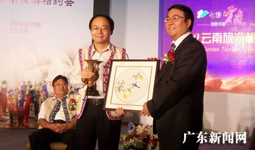 云南省旅游局和廣東省旅游局負(fù)責(zé)人互送禮品。