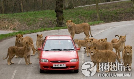 2009年4月,游客駕駛著汽車在英國(guó)一家野生動(dòng)物園觀光時(shí)被10多頭獅子圍困,司機(jī)把車門和窗戶緊緊關(guān)閉,以防動(dòng)物襲擊。此時(shí),司機(jī)的表情還能否如觀光時(shí)一樣愉悅就不好說了