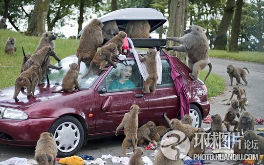 2009年7月,英國(guó)諾斯雷野生動(dòng)物園的游客接到警告,因?yàn)檫@里出現(xiàn)了一群會(huì)“洗劫”你車頂旅行箱的“強(qiáng)盜狒狒”。它們對(duì)箱子內(nèi)的東西都很好奇,包括衣服、鞋子甚至內(nèi)衣都是這些狒狒的“尋寶”對(duì)象。