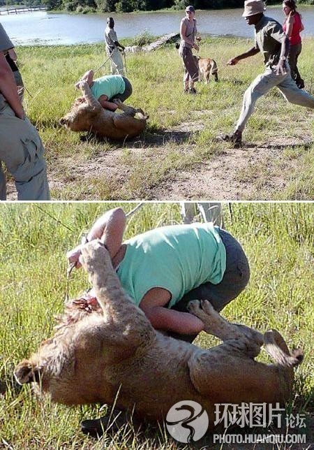 2008年3月,來自英國(guó)艾塞克斯郡的28歲女子凱特·德魯和其他一些背包客相約乘大巴車在非洲旅游度假,期間他們參觀了津巴布韋的一個(gè)野生動(dòng)物保護(hù)區(qū),那里有一個(gè)養(yǎng)獅基地,游客們只要花24英鎊就可以和獅子一起漫步游玩,而這些獅子被認(rèn)為足夠馴服到可以與人接觸的程度。令人意想不到的一幕發(fā)生了,一只獅子突然從后面撲向德魯,鋒利的牙齒已經(jīng)咬住德魯?shù)牟弊雍蟛�!最終,工作人員趕跑了獅子,而幸運(yùn)的是,德魯只是受到了輕傷。