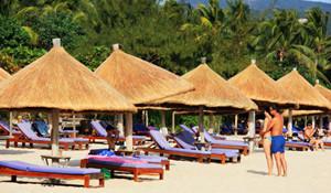 三亞灣毗鄰三亞市區(qū),是個(gè)半月形的公共海灘。這里有許多度假村和五星級(jí)酒店,但幾乎都不在沙灘上(因?yàn)樯碁┦菍儆谙蚬婇_(kāi)放的休閑設(shè)施,不能歸于酒店的私家領(lǐng)域),所以住在三亞灣雖可享受到便利,但沙灘的質(zhì)量和環(huán)境,跟擁有眾多酒店私家沙灘的亞龍灣相比,樂(lè)游的感受還是大不一樣。