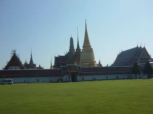 舉世聞名的泰國大皇宮緊鄰著湄南河,是曼谷市中心內(nèi)一處大規(guī)模的古建筑群(計28座),總面積21.84萬平方米。她是仿照故都大城的舊皇宮建造的,經(jīng)歷代君王不斷擴建,終于建成現(xiàn)在這座規(guī)模宏大的大皇宮建筑群。大皇宮是泰國諸多王宮之一,是歷代王宮保存最完美、規(guī)模最大、最有民族特色的王宮。
