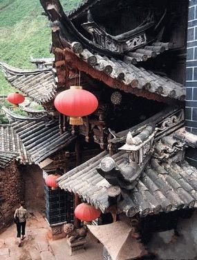 這里無論是蓋房子還是鋪街道都是用紅砂石,滿目的紅砂石和赤紅的土地讓整個黑井有籠罩著一層幽幽的感覺,即使在燦爛的陽光下也仿佛有陽光不能照耀到的地方。走過狹窄彎曲的街道來到武家大院,門樓建得有些怪異,它不取正向,偏偏來個側(cè)向而開,朝向東北。武家大院屬典型的的明清建筑風格,亭臺樓閣依山而建為三臺,每臺各成一個小型庭院,樓內(nèi)藏樓,廳中有廳,房里帶房,傳說共有九十九間房。在武家宅院的大門上還有著一塊御賜的匾額,上書“書獲芳徽”四個大字。可見當年的武家的輝煌,可是歲月滄�,F(xiàn)在只留下這氣勢雄偉,構(gòu)思奇巧,令人嘆為觀止的宅地。因為不是周末游人不多,只有我們一行人,能開放的房間幾乎都走了一趟,靜靜的坐在廳堂俯視著戲臺,仿佛看到這里曾客來客往杯光酒影,小姐少爺們悠閑的看著戲臺上風影流年。游走時發(fā)現(xiàn)有些房門上還遺留著文革時期的標語,恍然間有些時光錯落的感覺。
