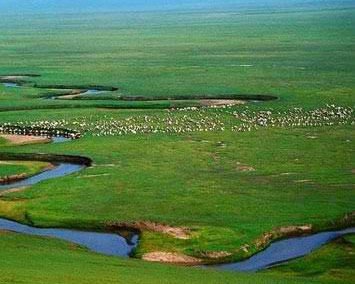 呼倫貝爾草原是內(nèi)蒙古草原風光最為絢麗的地方,擁有一億多畝草場,兩億多畝森林,500多個湖泊,3000多條河流,遼闊無邊的大草原像是一塊天工織就的綠色巨毯,步行其上,那種柔軟而富于彈性的感覺非常美妙。而綠草與藍天相接處,牛羊相互追逐,牧人舉鞭歌唱,處處都是“風吹草低見牛羊”的景致,將它譽為世界上最美、最大、最沒有污染的幾大草原之一,真是當之無愧。