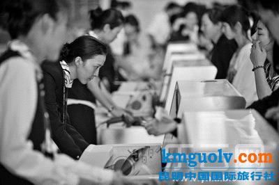 長水機(jī)場(chǎng)再次演練辦理登機(jī)手續(xù)。本報(bào)記者 趙永峰 攝